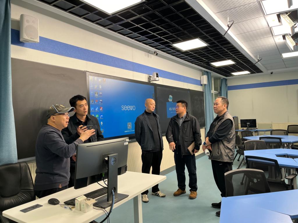 路华清对王涛一行的到来表示热烈欢迎。双方先后介绍了各自学校信息化建设的相关情况。随后,双方实地考察了我校直录播教室、精品录播教室、艺术学院智慧琴房、中心机房,并就教室建设、课程资源建设、教学平台建设、教育数字化转型、人工智能应用、本科教学审核评估等方面的经验和做法进行了深入交流探讨。